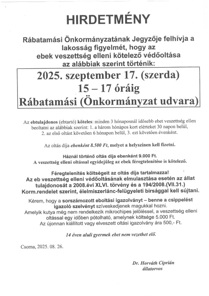 Eboltás – 2025.09.17. 2025.09.09. Aktualitások Bejegyzés navigáció Previous Previous post: Iskolakezdési támogatás 2025/2026Next Next post: ÁLLÁSPÁLYÁZAT